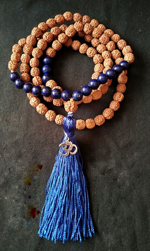 Japamala con piedra protección Lapislazuli y Rudrasksha